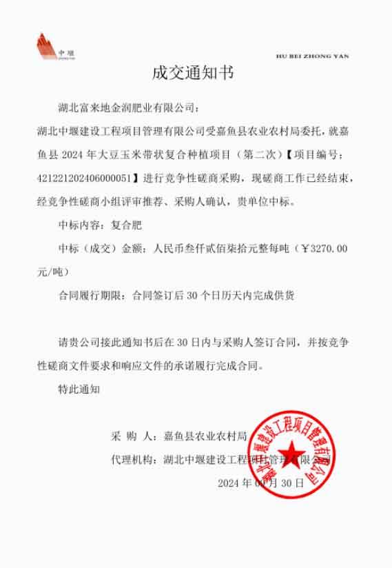 嘉鱼县2024年大豆玉米带状复合种植项目(第二次)中标书